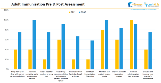 The Adult Immunization QI project aims to improve adult immunization rates using evidence-based tools of practice choosing, with a shared goal of ensuring that nearly all patients are counseled and receive recommended vaccines. This learning collaborative additionally provided an opportunity for practices to utilize and provide feedback on the Rhode Island Child and Adult Immunization Registry (RICAIR) which has been in use for adult immunizations since 2020.